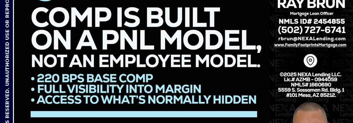 Hi, my name is Ray Brun. I’m a Loan Officer with NEXA Lending LLC., offering personalized mortgage solutions, fast customized quotes, great rates and service with integrity.