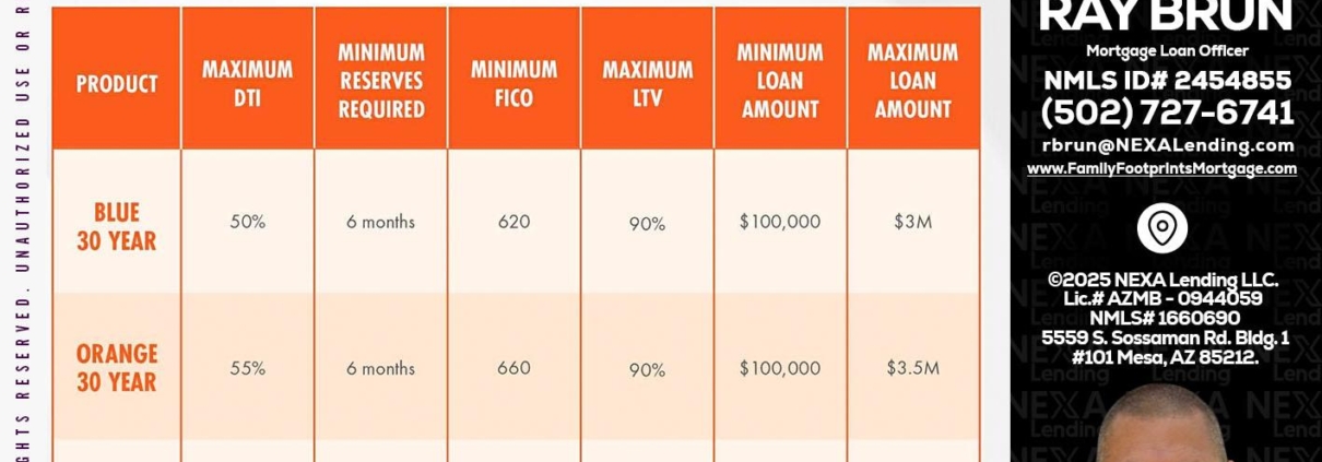 30 YEARS OPTIONS - Ray Brun -Mortgage Loan OriginatorHi, my name is Ray Brun. I’m a Loan Officer with NEXA Lending LLC., offering personalized mortgage solutions, fast customized quotes, great rates and service with integrity.