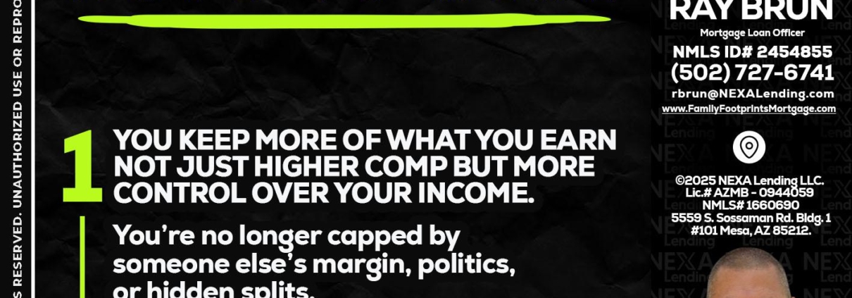 Hi, my name is Ray Brun. I’m a Loan Officer with NEXA Lending LLC., offering personalized mortgage solutions, fast customized quotes, great rates and service with integrity.