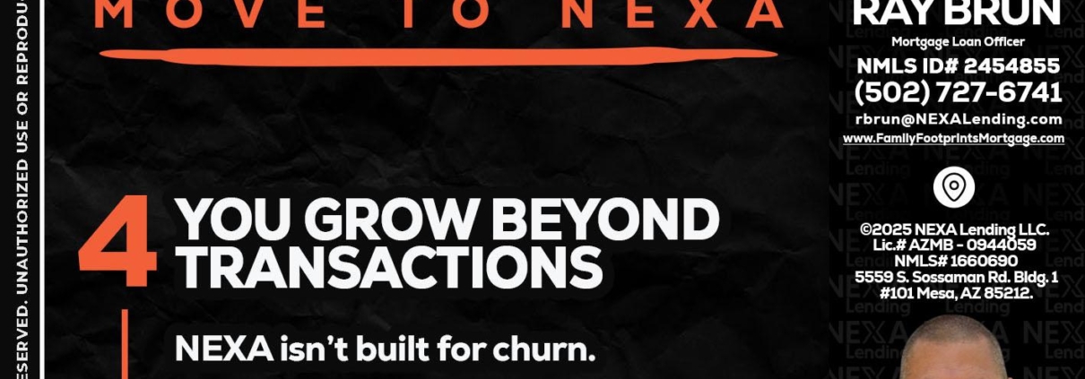 Hi, my name is Ray Brun. I’m a Loan Officer with NEXA Lending LLC., offering personalized mortgage solutions, fast customized quotes, great rates and service with integrity.