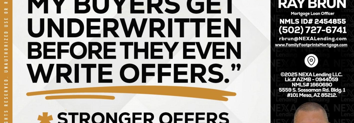 Hi, my name is Ray Brun. I’m a Loan Officer with NEXA Lending LLC., offering personalized mortgage solutions, fast customized quotes, great rates and service with integrity.