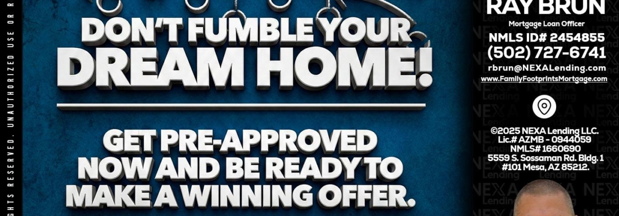 dont fumble - Ray Brun -Mortgage Loan OriginatorHi, my name is Ray Brun. I’m a Loan Officer with NEXA Lending LLC., offering personalized mortgage solutions, fast customized quotes, great rates and service with integrity.