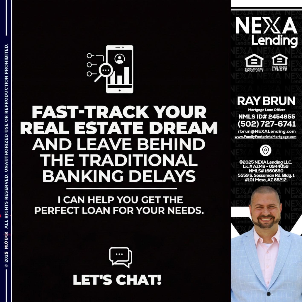 Hi, my name is Ray Brun. I’m a Loan Officer with NEXA Lending LLC., offering personalized mortgage solutions, fast customized quotes, great rates and service with integrity.