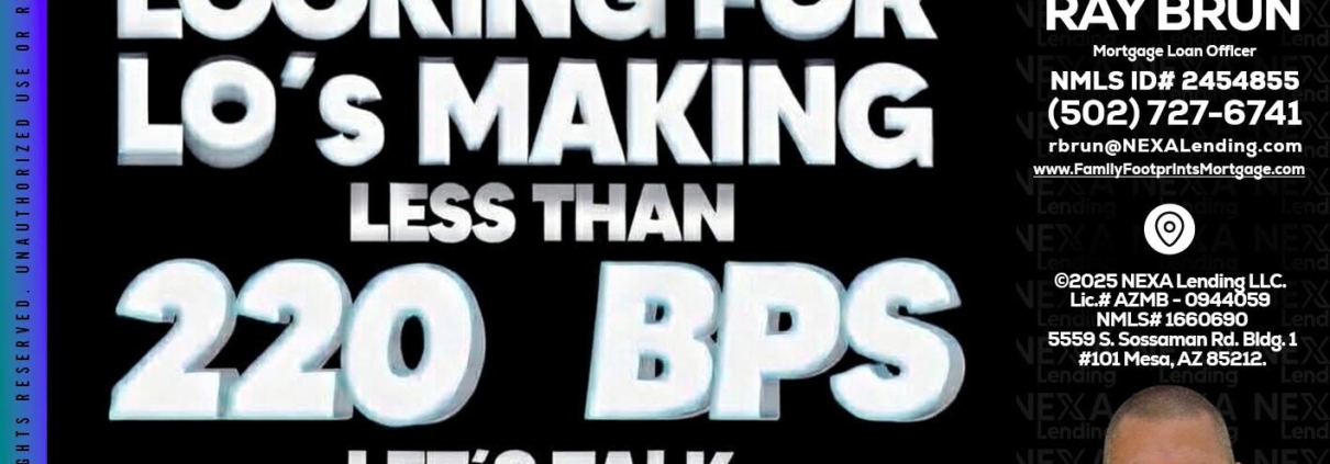 Hi, my name is Ray Brun. I’m a Loan Officer with NEXA Lending LLC., offering personalized mortgage solutions, fast customized quotes, great rates and service with integrity.