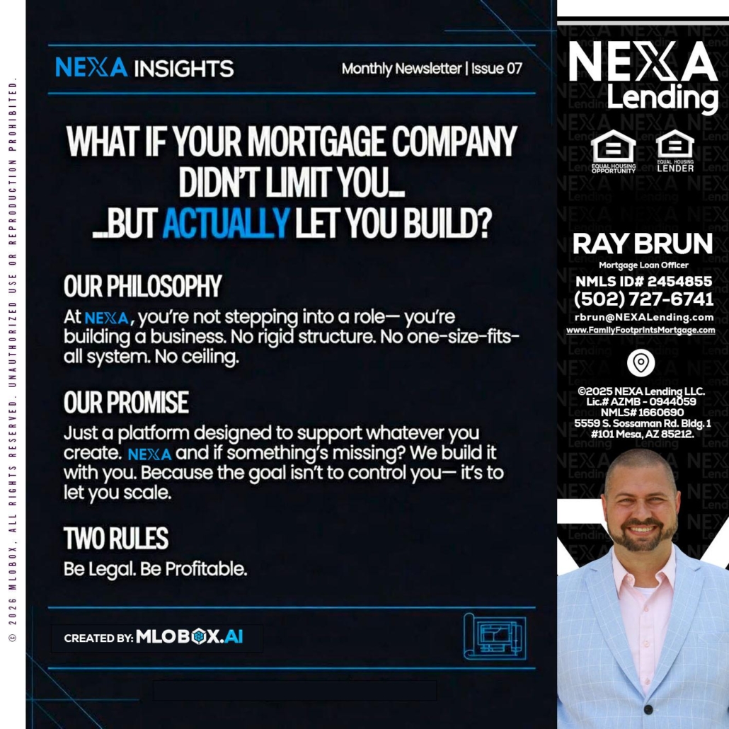 Hi, my name is Ray Brun. I’m a Loan Officer with NEXA Lending LLC., offering personalized mortgage solutions, fast customized quotes, great rates and service with integrity.