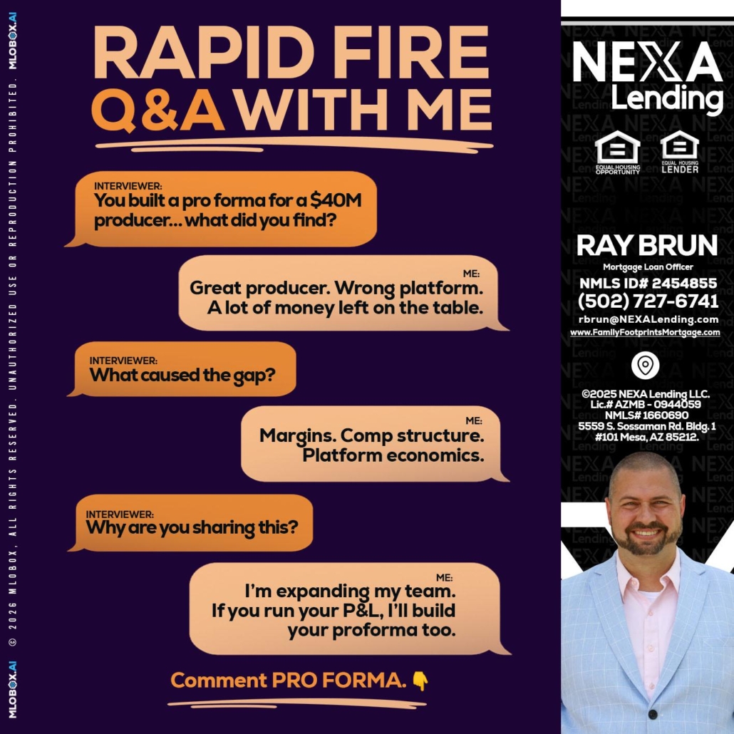 Hi, my name is Ray Brun. I’m a Loan Officer with NEXA Lending LLC., offering personalized mortgage solutions, fast customized quotes, great rates and service with integrity.