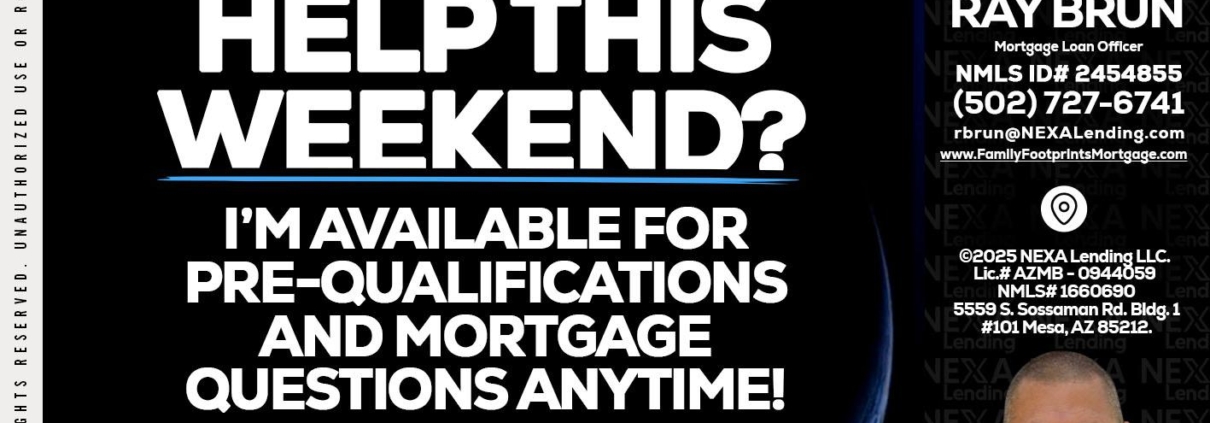 Hi, my name is Ray Brun. I’m a Loan Officer with NEXA Lending LLC., offering personalized mortgage solutions, fast customized quotes, great rates and service with integrity.