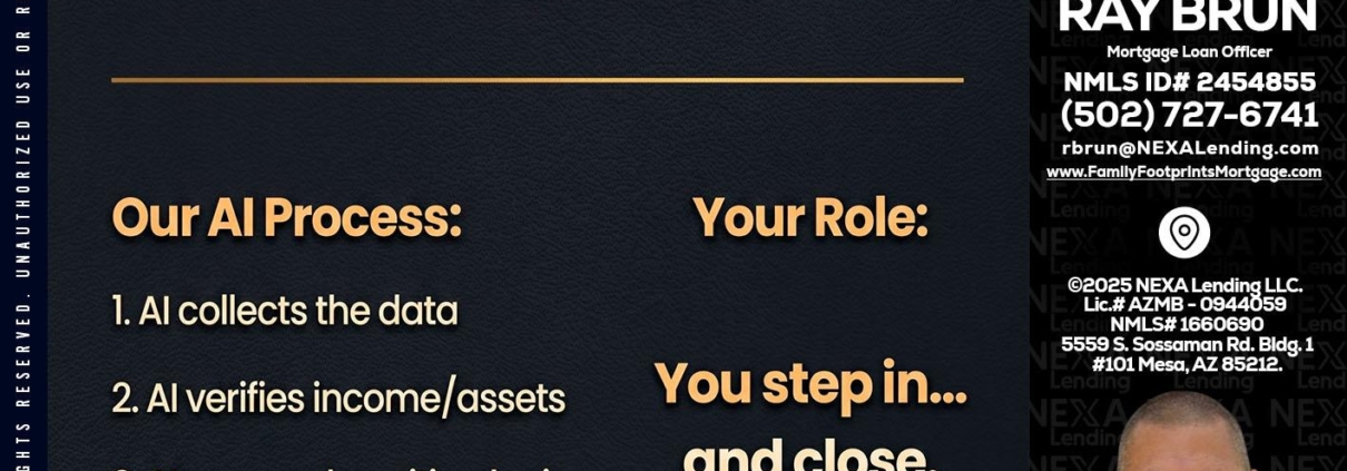 Hi, my name is Ray Brun. I’m a Loan Officer with NEXA Lending LLC., offering personalized mortgage solutions, fast customized quotes, great rates and service with integrity.