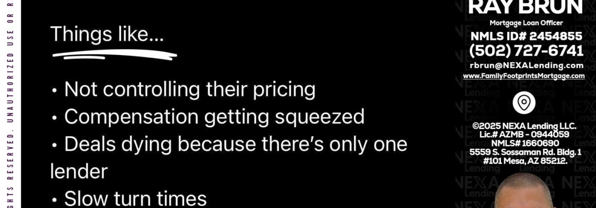 Hi, my name is Ray Brun. I’m a Loan Officer with NEXA Lending LLC., offering personalized mortgage solutions, fast customized quotes, great rates and service with integrity.